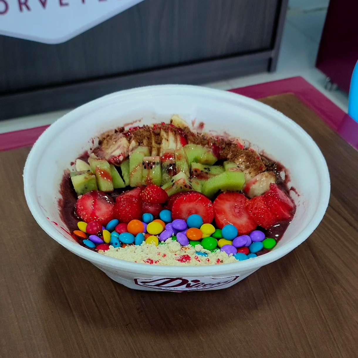 Açaí+ frutas ( morango ,banana e kiwi) + 3 complementos a escolher